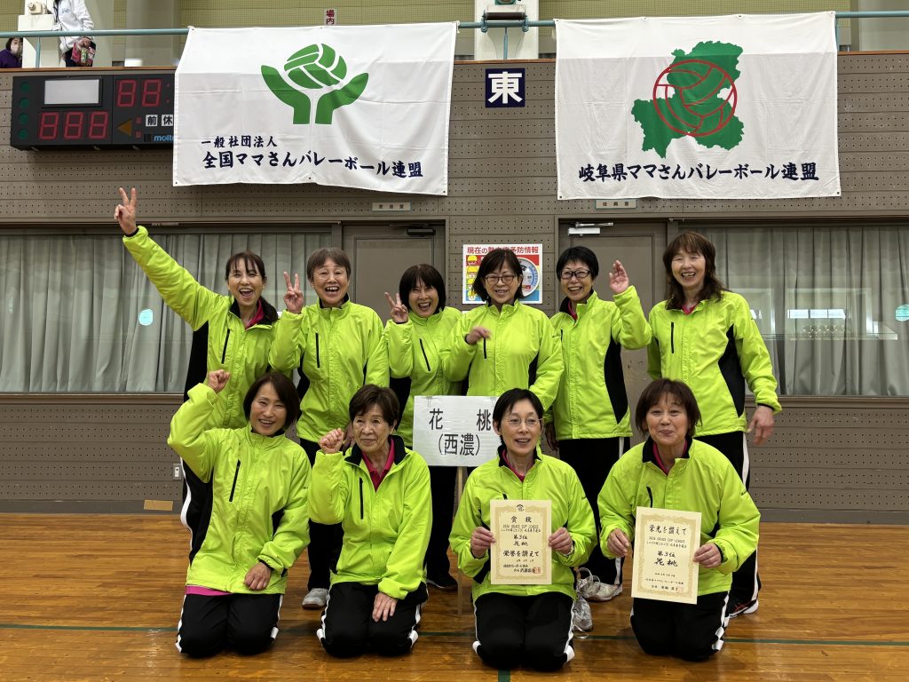 また、2026 GRACE CUP LEAGUE シニアの部(ことぶき)岐阜県予選会では勝敗・セット率・ポイント率により、1位にBYクラブ(東濃)、2位に輪(岐阜)、3位に花桃(西濃)となり、上位チームから会場選択をした結果、7/12(日)岩手県 盛岡市で開催の「2026 GRACE CUP LEAGUE(東部会場)」に花桃(西濃)、10/25(日)岐阜県 山県市で開催の「2026 GRACE CUP LEAGUE(中部会場)」にBYクラブ(東濃)・MOAⅡ(岐阜)、11/21(土)三重県 伊勢市で開催の「2026 GRACE CUP LEAGUE(西部会場)」に輪(岐阜)が出場権を獲得することになりました。